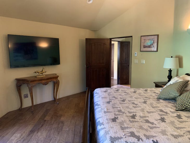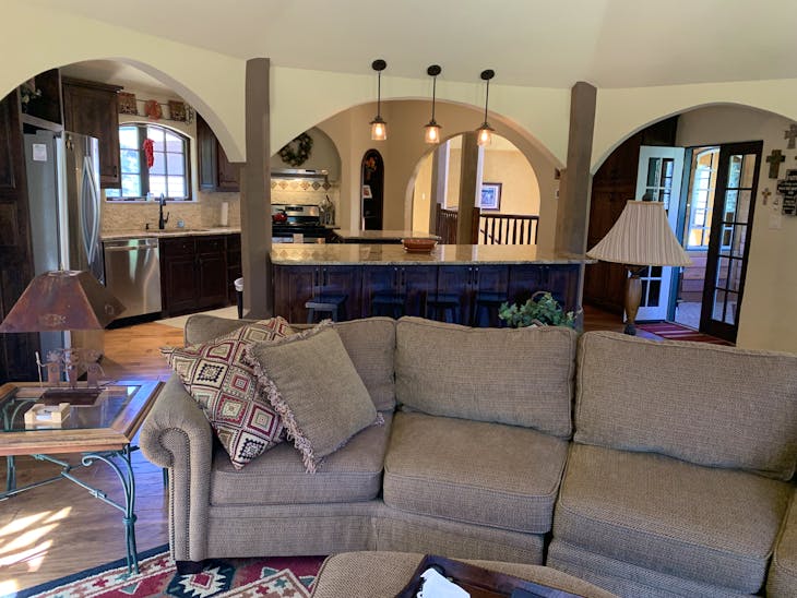 This unique, gorgeous rental will give you all the comfort of home if not more! Enjoy this 2 story home in the Upper Valley, during your Red River getaway. The home has 4 bedrooms, the master has a King, bedroom #2 has a queen, and bedrooms #3 and #4 have bunk beds. You won’t have to worry about fighting for showers as you get ready to hit the slopes or trails as it has 3 beautiful bathrooms that are supported by 2 large water heaters and the master suite is like visiting the spa! There is plenty of room for the entire family* with two large family rooms, a gorgeous large kitchen with a bar and center island! Plenty of room to cook those mountain-inspired meals. This mountain rental has High Speed fiber internet, Direct Tv in all bedrooms, so if you are working remotely or taking the family on an adventure with distant learning this home is perfect for your mountain trip! The home has plenty of room for trailer parking so be sure to bring your AtVs for mountain exploring. The home has beautiful views of the mountains and you can enjoy the sights and sounds of the river from the front porch! Please note the property has an outdoor camera. All reservations are subject to our rental terms and conditions and cancellation/refund policy. In the event of a cancelation, merchant service charges are non-refundable. If you have any questions, please reach out prior to your stay. *Up to two pets allowed (under 35 pounds each). A nonrefundable pet charge of $150 will be applicable, at the time of check in.