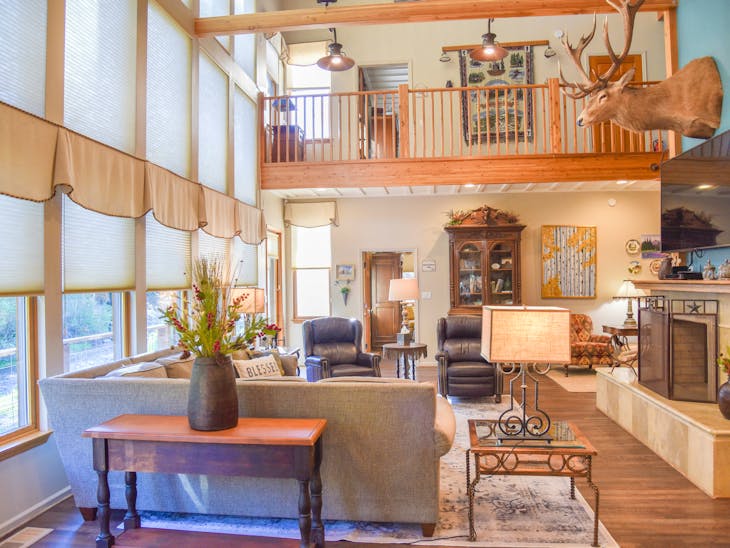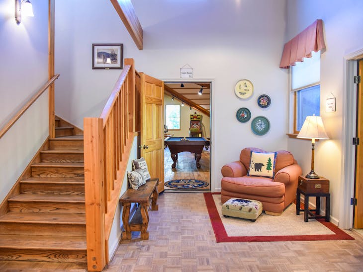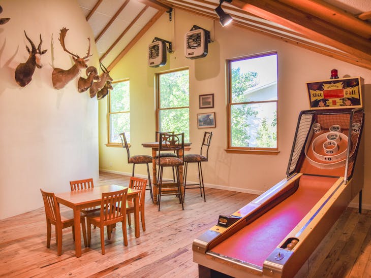 Has WiFi, Washer/Dryer, Hot Tub, Game Room, and Elevator Pet Friendly with a Non-Refundable Pet Fee. Pets must be under 60 lbs. Pet Fee: If the pet fee isn't charged at the time of booking it may be charged at the time of check in or after check out. No Air Conditioning No Trailer Parking Please proceed to the Reservations Unlimited office located at 312 W Main to complete the check-in process. Reservations Unlimited is currently using contactless check-in - please look for an envelope with your last name displayed on or near the office door upon arrival into town. This envelope will contain all of the relevant check-in information but we do ask that you review and sign the first page and either leave that with a team member or in the dropbox located by the office door.