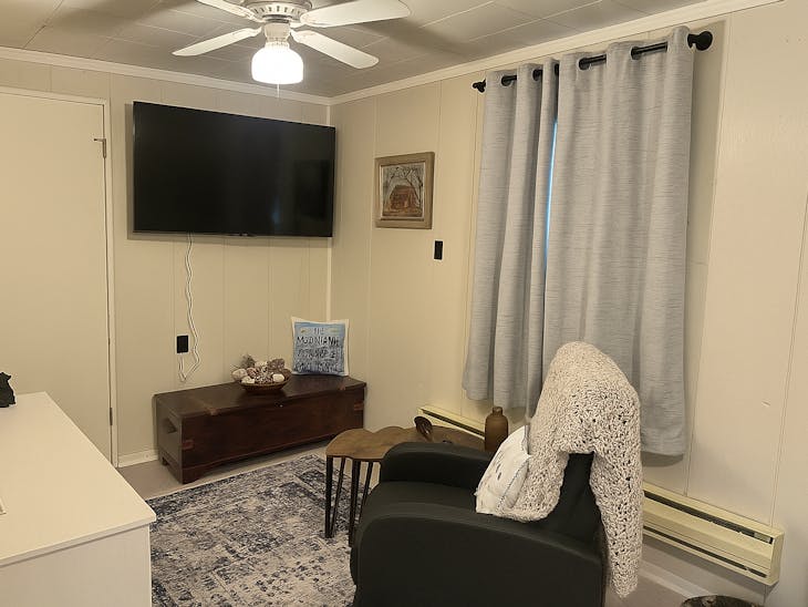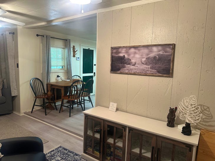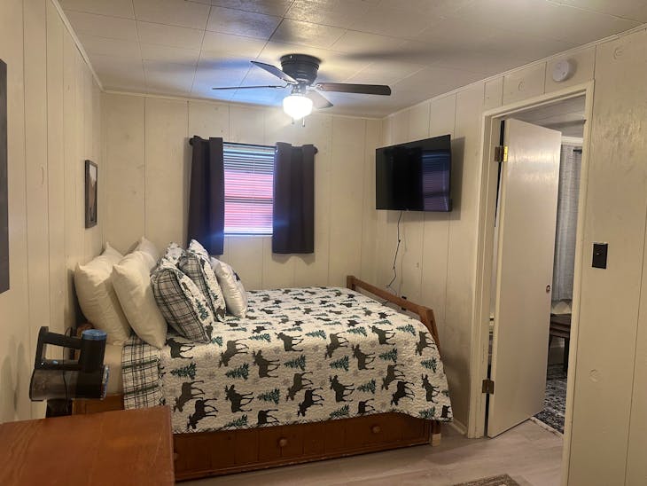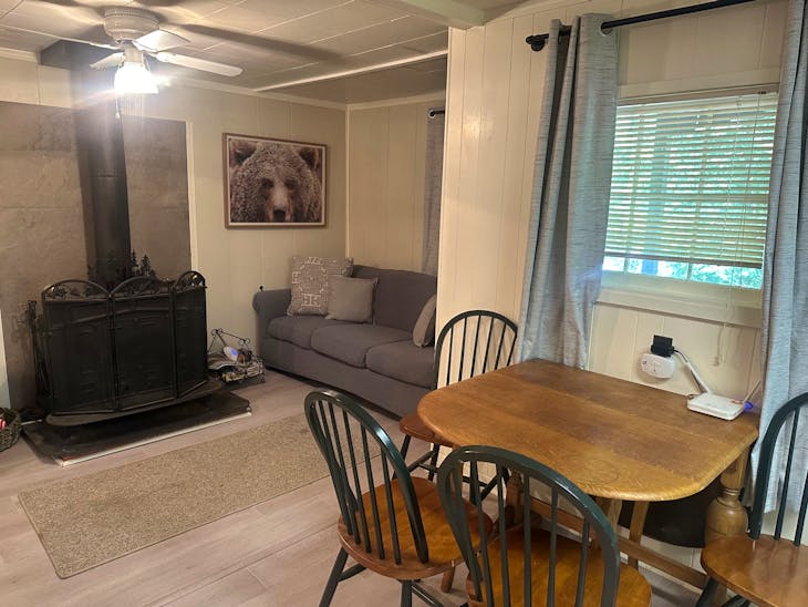 Escape to the scenic beauty of Bittercreek in Red River, New Mexico, and unwind at this cozy, pet-friendly cabin that comfortably sleeps up to five guests. Tucked away on a spacious lot surrounded by mountain charm, this two-bedroom, one-bath retreat offers a peaceful and welcoming atmosphere for families, friends, and travelers looking to enjoy the best of Northern New Mexico. Inside, the cabin features a warm and rustic living area with a wood-burning fireplace, the perfect spot to relax after a day of hiking, fishing, or skiing. High-speed Wi-Fi and Smart TVs ensure you stay connected and entertained, while the full kitchen and in-unit washer and dryer provide all the comforts of home. The proprty also now has a/c. One bedroom includes both a full bed and a twin bed, while the second bedroom offers a cozy full bed. The bathroom includes a convenient shower and tub combo. Step outside and take in the fresh mountain air on the large property, complete with a swing and firepit on the north side of the cabin, ideal for evenings under the stars. An outdoor propane grill is available for those who enjoy cooking in the open air. The spacious circular driveway makes parking a breeze, even for trailers or multiple vehicles. One of the most unique features of this cabin is the musical backdrop on certain evenings, you can hear the music from Michael Martin Murphey’s concerts from the porch or while swinging outside. Bring your own lawn chairs if you’d like to sit and enjoy listening to the show. Whether you're here for the outdoor adventures or just to relax and recharge, this Bittercreek cabin offers an unforgettable Red River experience in a beautiful mountain setting. All reservations are subject to our rental terms and conditions and cancellation/refund policy. Merchant service charges are non-refundable in the event of a cancellation. If you have any questions, please contact us prior to your stay.
