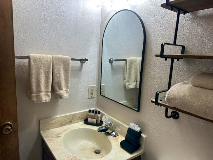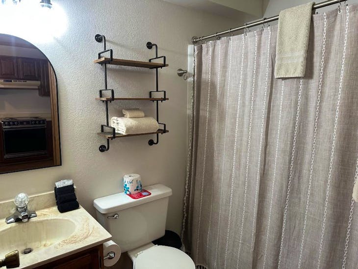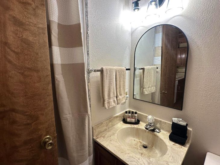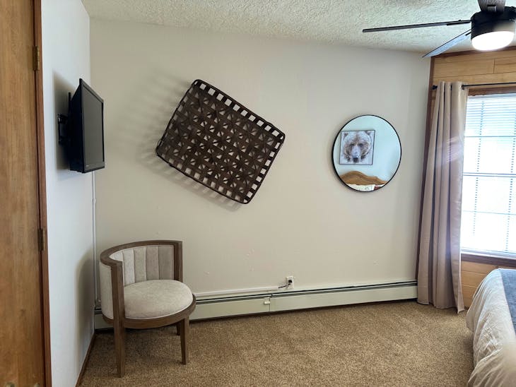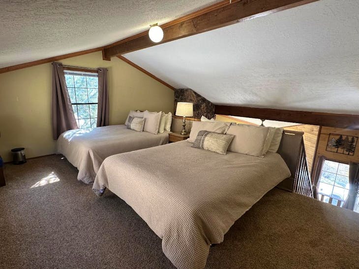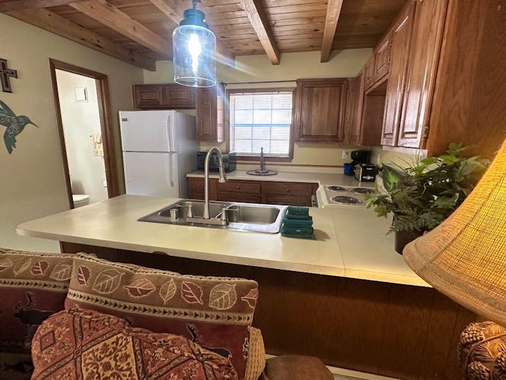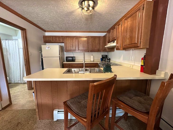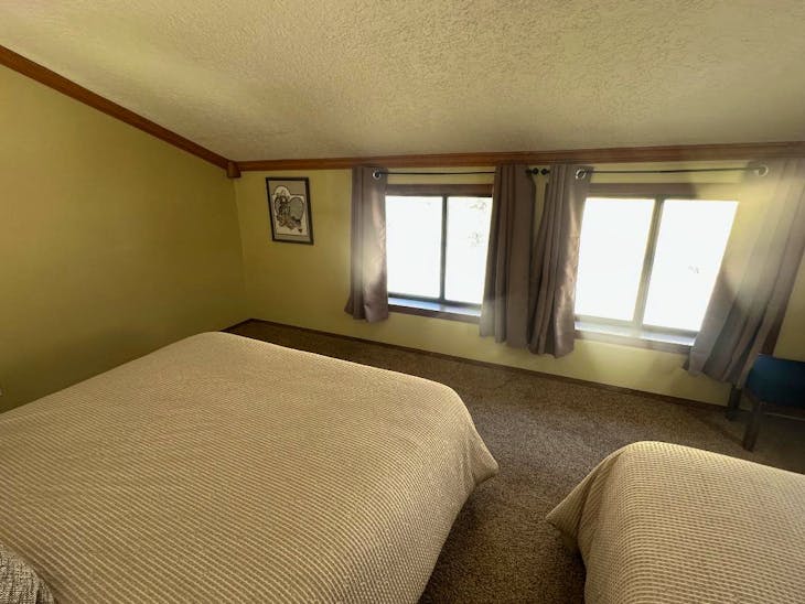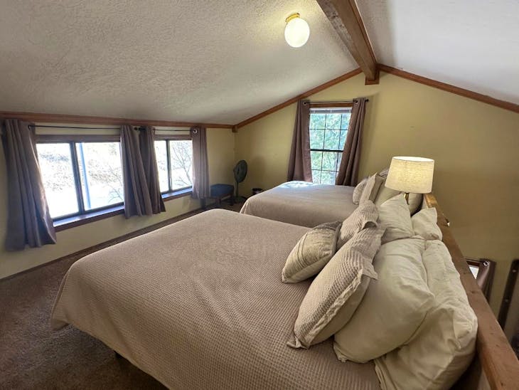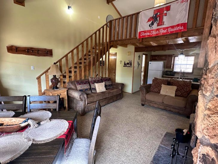 Riverbend Townhouse #1 “Hummerhaven” is a four-bedroom unit located on the river that can sleep up to 10. This combines both the #1A and #1E units which can be rented separately. The front door of the “A” unit opens to a stairway leading up to the 2nd floor where there are two bedrooms. The 1st bedroom has a queen bed and the 2nd bedroom has a queen bed. There is a full bath (tub/shower) in the hallway. The main living area and full-sized kitchen are located on the 3rd level where you can warm up to the wood burning fireplace. There is a flat-screen smart Tv for your entertainment. By the dining area, a patio door opens to a private balcony with beautiful views of the mountains! On this level, there is a bathroom with a shower, as well. From here the stairs lead up to a loft that overlooks the living area below. In the loft, there are two queen beds. Part of this rental includes the “E” (efficiency) unit on the ground floor. This unit has its own kitchen, full bath (tub/shower), and king size bed. The “E” unit also has a private entrance. The Riverbends are 5-6 blocks from the main ski area and are also on the route of the Red River Miner trolley. This property does have high speed wifi. No washer/dryer. All reservations are subject to our rental terms and conditions and cancellation/refund policy. In the event of a cancellation, merchant service charges are non-refundable. If you have any questions, please reach out prior to your stay. **Please note that during the fall of 2024 and spring/summer of 2025 the town of Red River will be replacing waterlines. Their normal working hours are from 7am-5pm Monday-Friday; however, there might be times that they have to conduct work during the weekends. You can expect traffic distributions and temporary water outages while they are working. Please note that on-street residential parking might not be available during construction. During these times, access to Red River and Pioneer Creek recreational area might be reduced or diverted. Please be aware that any construction or town activity is not in our control. If you have any questions, please let us know.