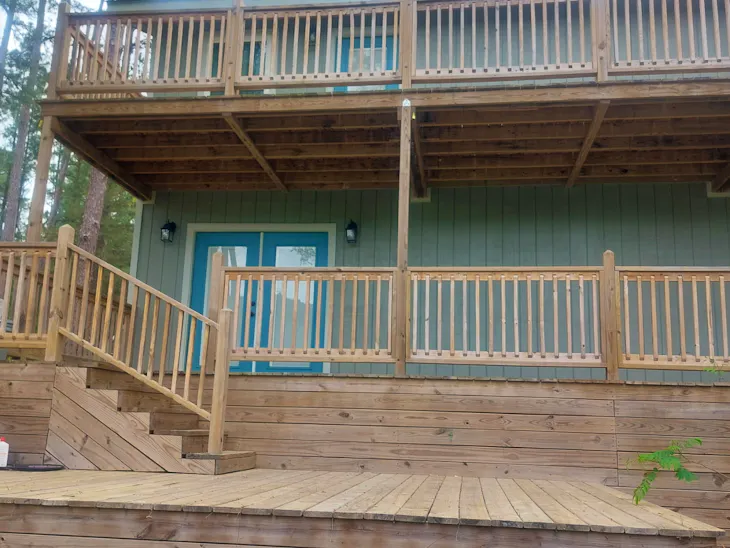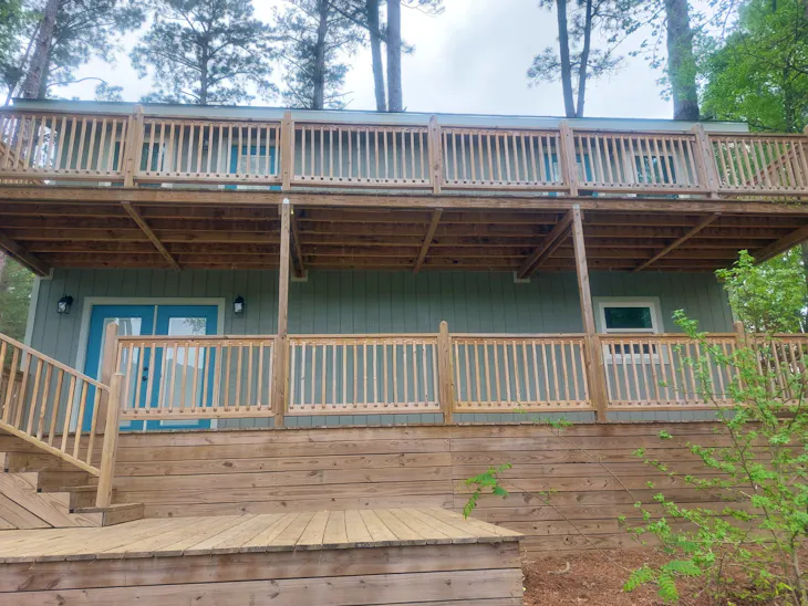 Big Bass Bungalow is a peaceful home offering 2 bedrooms, both with queen-size beds, and a 1 1/2 bath with a walk-in shower. The home features Smart TV streaming options and a full-size washer and dryer. Nestled in a 29-acre private lake and setting just 10-15 minutes from the world-famous Lake Fork, this home is the perfect place to unwind after a long day on the water. Whether you’ve spent the day fishing, boating, or exploring the surrounding East Texas countryside, you’ll appreciate returning to a comfortable space designed for rest and relaxation. Anglers will love the convenient access to Lake Fork, known for some of the best bass fishing in Texas. After a full day on the lake, you can come back, clean up, and relax in a quiet environment away from the crowds. Not into fishing? No problem. This home is also perfect for anyone looking to slow down and enjoy a peaceful retreat. Sit back with your morning coffee or unwind in the evening while taking in the view from either the first or second floor balcony. The calm surroundings, fresh country air, and scenic views create the perfect atmosphere to relax, recharge, and enjoy the slower pace of country living. Come experience the beauty, comfort, and peace that country life in East Texas has to offer. Whether you’re here for outdoor adventure or simply a quiet escape, this cozy getaway is the perfect place to make yourself at home.