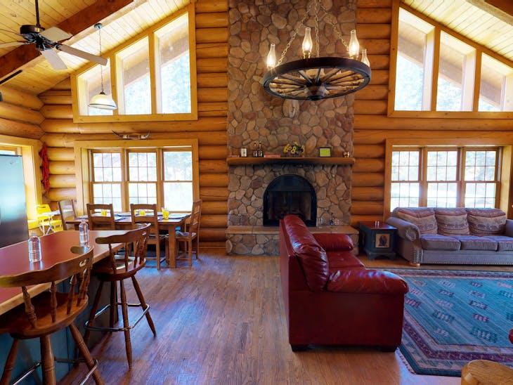 Enjoy Red River like a true local. Breathtaking views of the mountains will make you instantly take a deep breath and fill your lungs with brisk mountain air! Once you have taken in the mountains enjoy the quiet sounds of the river from your porch as you enjoy a cup of coffee and relax with the sounds of nature. If you time it just right, you just might see some of our friendly neighbors grazing by the river. Deer and other mystical creatures are always stopping by to say “hello.” Just one of the many benefits of staying in Red River. Be sure to relax and take in the sounds and atmosphere of this perfect log cabin that can fit the entire family! What you will expect to find at 101 Red River Lodge & Cabin: Lodge is a Large Four Bedroom Log Cabin that is boasting with charm – Sleeps 11. Bedroom 1 – King bed, Bedroom 2 – King bed, Bedroom 3 – Bunk bed (2 Twins) & Twin Rollaway, Bedroom 4 – 2 Full Size Beds, 3 Baths (2 walk-in showers & one tub/shower), Gas Log Fireplace, Full Kitchen, Microwave, Washer/Dryer, Tv/DvD, This property does not allow any Smoking. The 101 River Cabin is located on the other side of the lodge; it's a 1 bedroom, 1 bathroom (tub/shower), kitchen, living room w/fireplace, TV, WiFi. Enjoy being close to Downtown and the Conference Center. This property is conveniently located between both the Platinum and Copper Chair Lift which is perfect for all seasons. Be ready to enjoy what Red River has to offer as this property. This property has internet access and Dish satellite TV. For your convenience, the property has a full washer and dryer. There is no trailer parking, but the municipal parking area is close by. All reservations are subject to our rental terms and conditions and cancellation/refund policy. In the event of a cancelation, merchant service charges are non-refundable. If you have any questions, please reach out prior to your stay.
