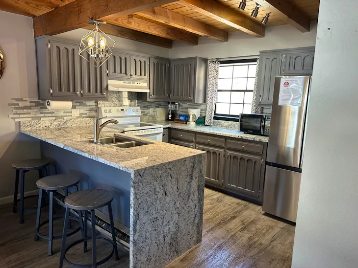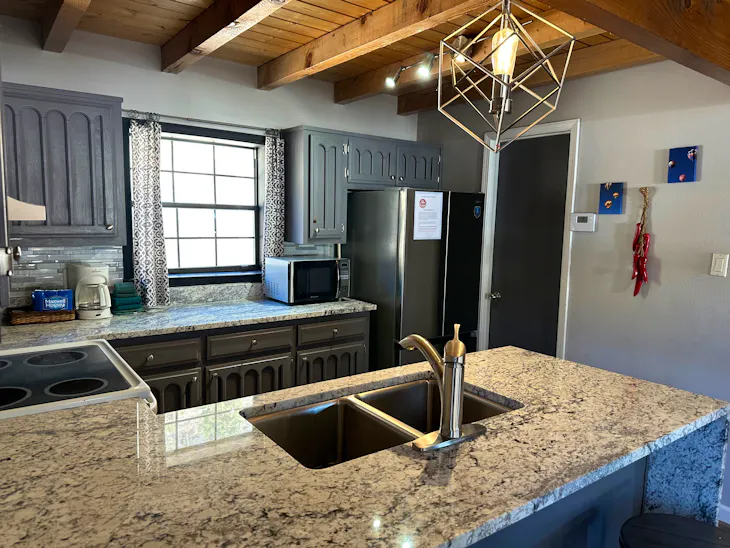 No Washer/Dryer Has WiFi Has Trailer Parking for a small trailer Hot Tub available Pet Allowed with Non-Refundable Pet Fee If Guests aren't charged the pet fee at time of booking then it will be charged at time of check in, the $100.00 Non-Refundable pet fee. Please proceed to the Reservations Unlimited office located at 312 W Main to complete the check-in process. Reservations Unlimited is currently using contactless check-in - please look for an envelope with your last name displayed on or near the office door upon arrival into town. This envelope will contain all of the relevant check-in information but we do ask that you review and sign the first page and either leave that with a team member or in the dropbox located by the office door.