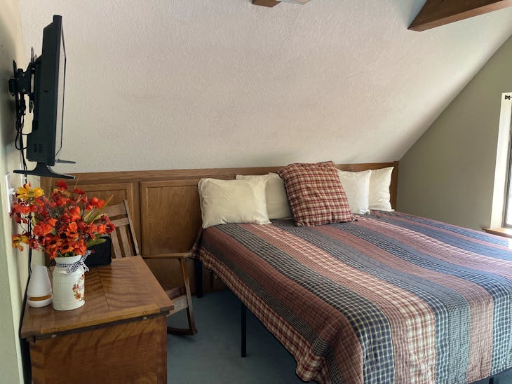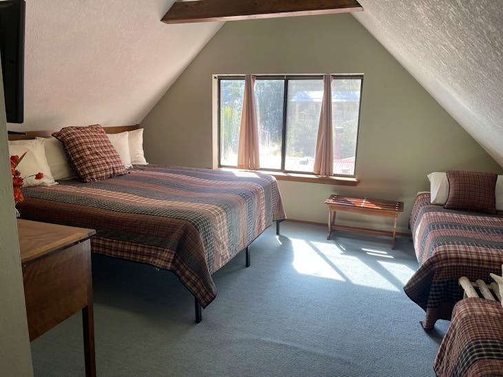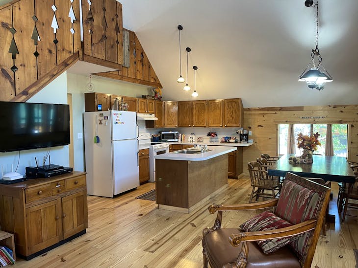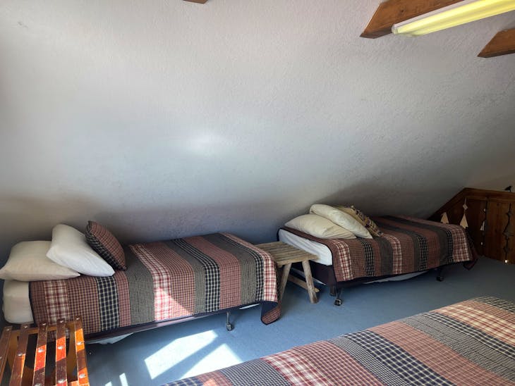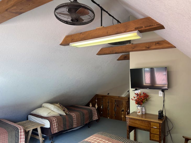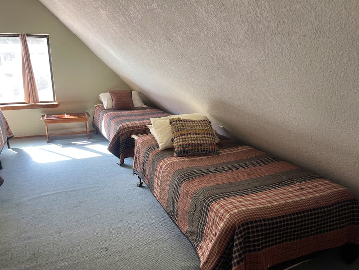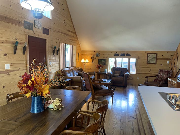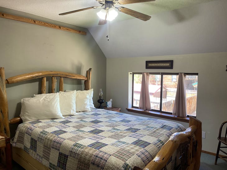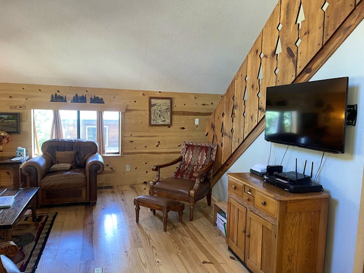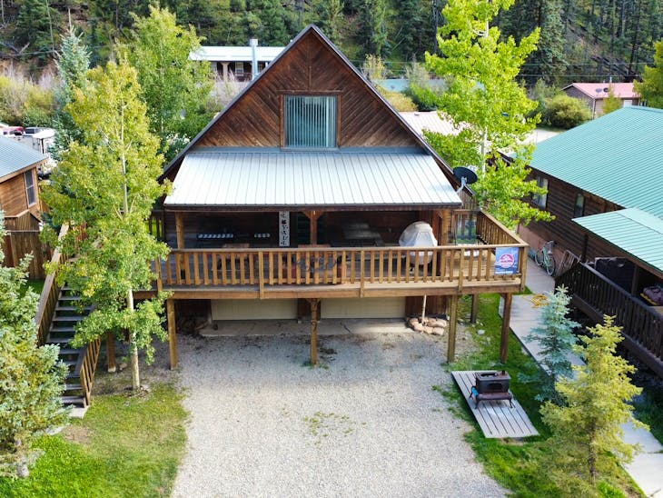 Welcome to The Bunkhouse! The house is located in a quiet part of Red River located just minutes from the ski area and a nice walk from Main Street. This home has beds for eight – great for a group of skiers/snowboarders or families looking for a place with access to a variety of activities throughout the year. Street Level The Bunkhouse has a large heated garage, perfect for storing skis/snowboards in the winter and ATVs in the summer. And the driveway allows for a trailer to be parked off the street! The Main Level The inviting living area and well-equipped kitchen provide a comfortable area for family and friends to gather for meals or a game night. There is a 40” flat-screen TV available for that quiet evening in, as well as an assortment of games and movies. Has WiFi. This level has two bedrooms (one king, one queen) with quality mattresses – each room offers its own charm. In addition, there are two bathrooms (one tub/shower and one walk-in shower) and washer/dryer. Whether cool weather or warm, the deck across the front of the house offers another great place to gather – for a meal prepared on the gas grill or simply to visit. The Loft The Bunkhouse is topped off with an area that provides beds for four more (one king, two twins) and floor space for sleeping-bag sleeping. A second TV is available in the loft (32”) for early-morning, late-evening viewing. Kid Friendly A Pack ‘n Play, high chair and stepping stool are offered for the littler guests to The Bunkhouse. Sleds hang in the garage waiting to take the younger visitors on great rides. This property has a total of 1728 square feet. All reservations are subject to our rental terms and conditions and cancellation/refund policy. In the event of a cancelation, merchant service charges are non-refundable. If you have any questions, please reach out prior to your stay. **Please note that during the fall of 2024 and spring/summer of 2025 the town of Red River will be replacing waterlines. Their normal working hours are from 7am-5pm Monday-Friday; however, there might be times that they have to conduct work during the weekends. You can expect traffic distributions and temporary water outrages while they are working. Please note that on-street residential parking might not be available during construction. During these times, access to Red River and Pioneer Creek recreational area might be reduced or diverted. Please be aware that any construction or town activity is not in our control. If you have any questions, please let us know.
