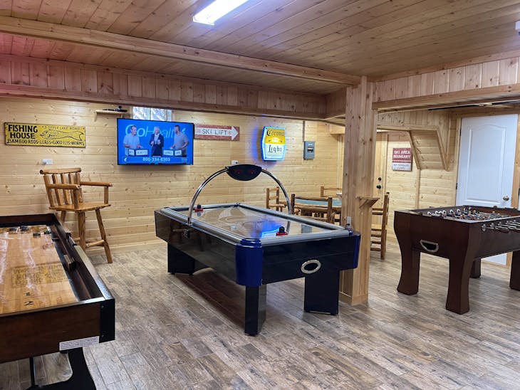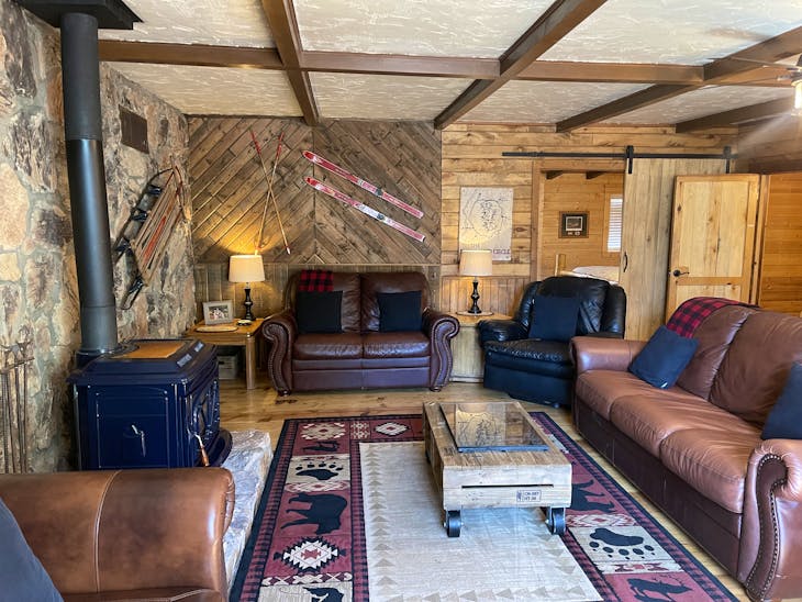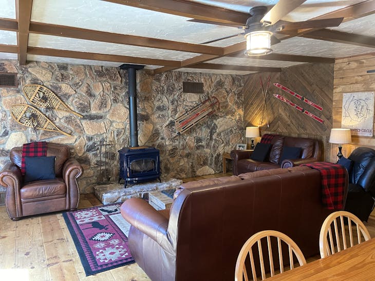The Outback is a private home located on Main Street, one block from The Face and Ski Area. The property has a game room in the basement that includes a TV, air hockey, foosball, shuffleboard, and video games. The first floor has a large living/dining room with a wood burning fireplace and a full kitchen. Located on the first floor are two bedrooms (one King bed and one queen bed), 1 1/2 bathrooms and a washer/dryer. There is a balcony that you can sit out on and listen, as well as watch the flowing of the creek underneath, as well as hear the singing of the birds. The second floor is a huge loft area with two queen beds, a twin trundle and a split bathroom. From the second floor, you can take the spiral staircase up to the third floor loft where there is a futon, kids toys and books. While you're up there, take a look out of the windows and enjoy the beautiful view of The Face in Red River. The Outback has an outdoor gas fire pit with seating for those beautiful evenings in the mountains. This property is perfect for remote workers because it has high-speed wifi. There is also satellite tv and approximately 2200 square feet of living space. Please note that due to an owner allergy, pets of any kind, including service animals, are not allowed - guests who violate this rule will be asked to leave immediately. Please be aware that this property has an outdoor camera and that there are clearly marked areas to park. Any parking violations will be referred to the local Marshall. Whether booking direct or through a third party, all reservations are subject to our rental terms and conditions and cancellation/refund policy. In the event of a cancelation, merchant service charges are non-refundable. If you have any questions, please reach out prior to your stay.