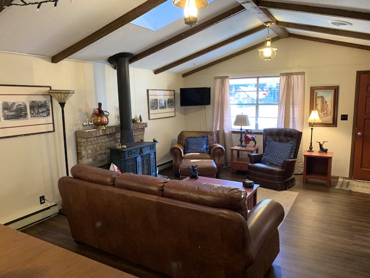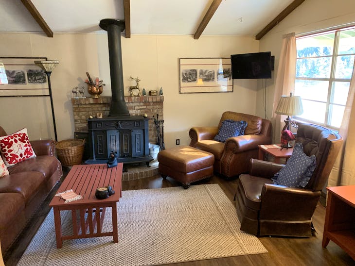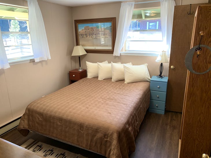 The ground floor has a large deck for gathering outside. The top deck boasts amazing views of the river down below. This home has 3 bedrooms and 2 baths. There are 2 bedrooms on the main floor with queen beds. The loft has 4 twin beds where the kids can tell stories of their Red River Adventures. The home has a full-service kitchen that opens up to the living room, where you’ll find a wood burning stove to keep you toasty on those cool summer nights and chilly winter days. During the day you can take a short walk and host a picnic down by the river - there is a picnic table ready for use! Get ready to have a marshmallow roasting party at night as there is a fire pit with log seating for your pure enjoyment. For a larger family, please consider renting our River Breeze property located next door. This home does have High Speed Wifi, Tv's and a DvD player. Cozy Bear is a great choice for those who work remotely. Satellite tv is not provided at this time. All reservations are subject to our rental terms and conditions and cancellation/refund policy. In the event of a cancelation, merchant service charges are non-refundable. If you have any questions, please reach out prior to your stay. Altitude - 9255 ft Latitude / Longitude location - 36 38'15"N, 105 23'4"W