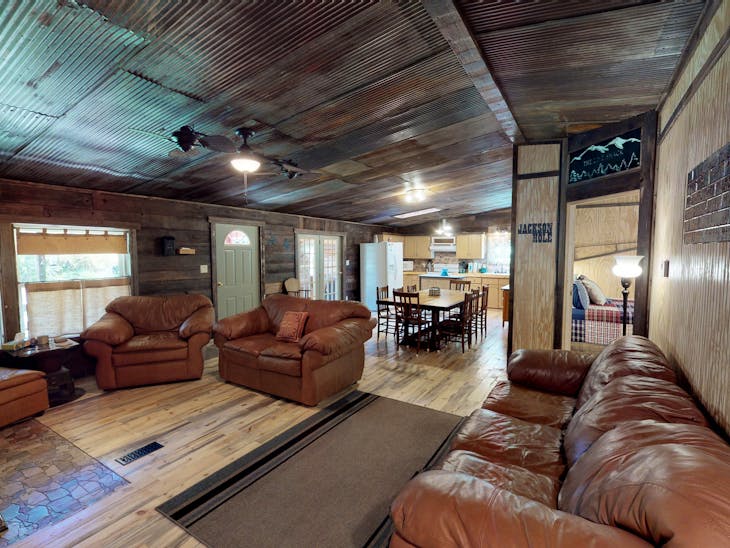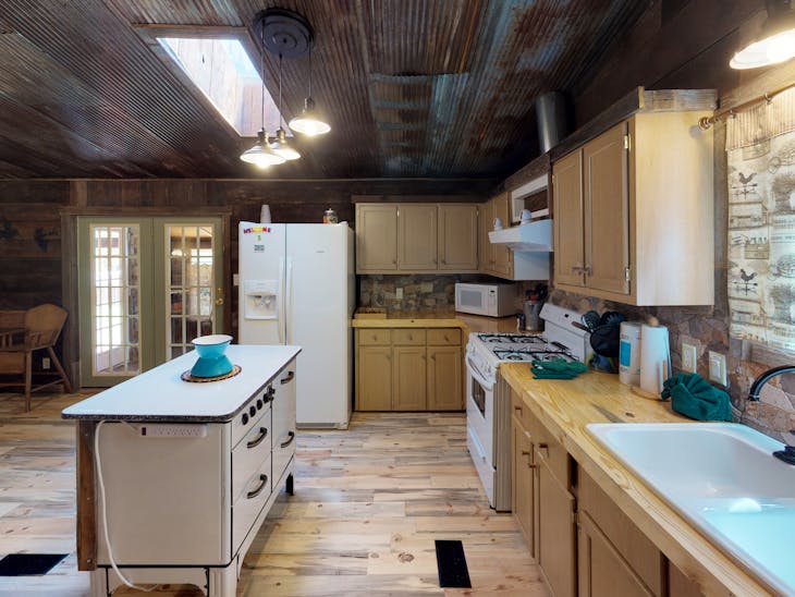 The Line Shack is located in town on Tenderfoot Trail across from the peaceful Pioneer Creek. This property allows visitors to be close to all that Red River has to offer. Guests will enjoy all of today’s amenities with High Speed Wi-Fi and satellite TV, along with easy access. The High Speed WiFi makes Line Shack a great choice for those who work remotely! The property has a ramp that is wide enough for a wheelchair. The home is one story. The deck has tables for you to enjoy a meal or two while you enjoy your feast near nature’s table. The master boasts a roomy King bed that will welcome you after a long day exploring our adventurous mountain town. The master also has a bath with a walk-in shower. Bedroom #2 has a Queen bed with a twin trundle while the 3rd bedroom houses a Queen bed and twin bunk - perfect for the kiddos to share. The guest bathroom also has a walk-in shower. The home comes with a fully equipped kitchen for any meals you choose to make. Off of the kitchen is a mudroom that has a washer and dryer so you won't need to pack extra clothes. If you need a little peace and quiet, you can let the kids run out back and enjoy the fresh air as it has a fenced-in yard. In the evening or lunch break, you can enjoy dogs and burgers on the grill. *Trailer Parking available ** All reservations are subject to our rental terms and conditions and cancellation/refund policy. In the event of a cancelation, merchant service charges are non-refundable. If you have any questions, please reach out prior to your stay. **Please note that during the fall of 2024 and spring/summer of 2025 the town of Red River will be replacing waterlines. Their normal working hours are from 7am-5pm Monday-Friday; however, there might be times that they have to conduct work during the weekends. You can expect traffic distributions and temporary water outrages while they are working. Please note that on-street residential parking might not be available during construction. During these times, access to Red River and Pioneer Creek recreational area might be reduced or diverted. Please be aware that any construction or town activity is not in our control. If you have any questions, please let us know.