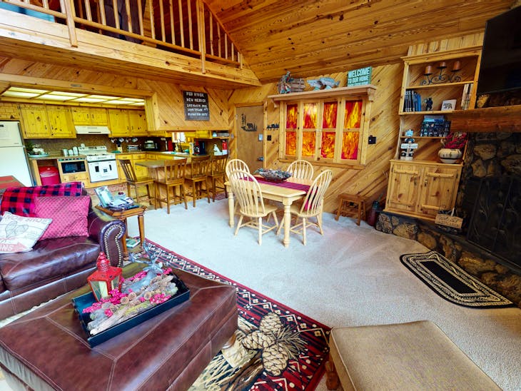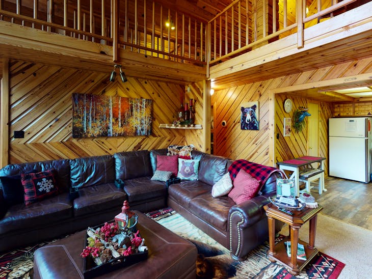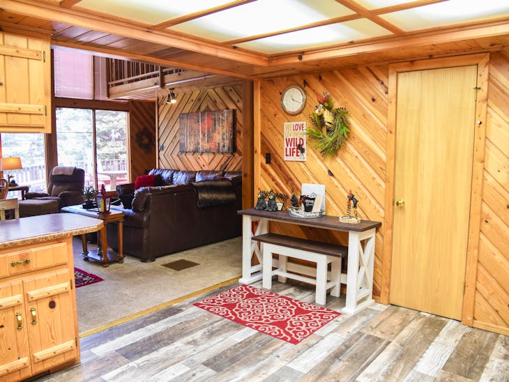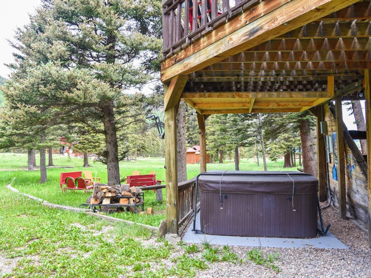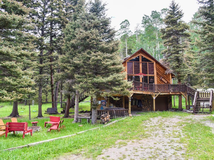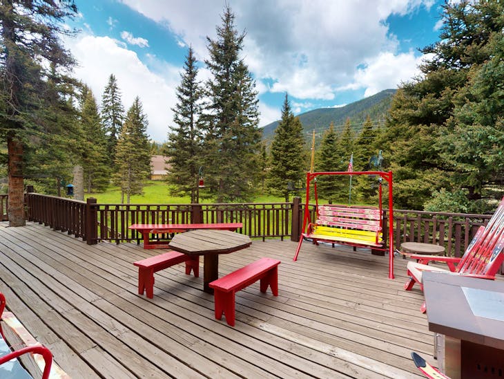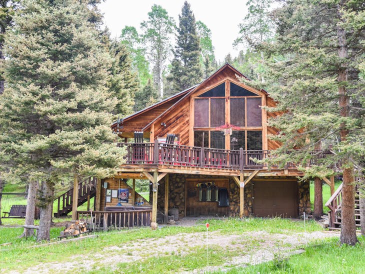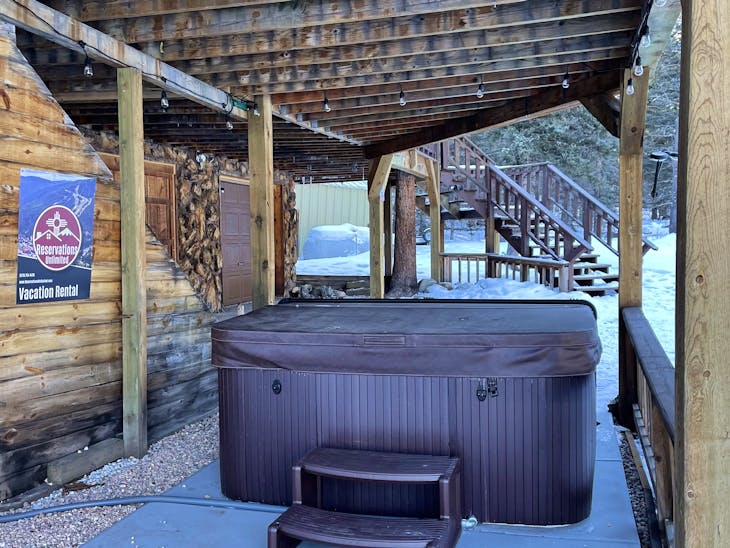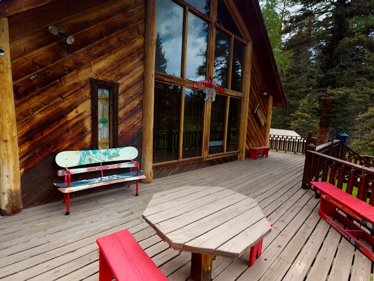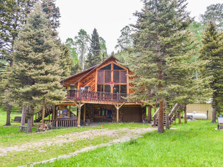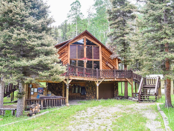 3 Bedrooms 2 Baths Three Story Cabin located in Upper Valley- Sleeps 11 Wifi, Hot Tub, Back-up Generator. This large cabin home is located in the Upper Valley on a large peaceful lot! As you make your way down the driveway you will not only notice all the natural beauty this area has to offer but a sitting area with a fire pit and bench-style swing as well. The views are impeccable either from the ground floor by the fire pit or by the large deck that sits off of the living room area. This home also comes with a hot tub. The guest authorizes a $500 security deposit refundable after inspection of hot tub, upon departure. Property also has a gas grill for all your grilling pleasures. As you enter the home you will see that there is a perfect mudroom for you to take your shoes off and jackets. Just off the mudroom are stairs leading to the basement where there is a bathroom, laundry room, and two bedrooms with queen-size beds. Come back to the main floor which has an expansive open floor concept. The living room has a wood-burning fireplace, large wrap around couch, large flat-screen TV, and floor to ceiling windows so you can always enjoy your surroundings and mountain views. On the main floor, you will find a full bath and a bedroom that has a queen-size bed. The large, fully equipped kitchen is on the main floor and has the same mountainous views as the living room. You’ll be sure to enjoy cooking your favorite meal with the views from the kitchen area. The kitchen has a large bar and wooden dining table that is sure to appease the seating arrangement for your hungry bunch! Off the main floor bedroom, you have stairs leading to the loft where you will find a futon and two day beds as well as a flat-screen TV. This home is not pet-friendly so Fido will have to stay home for this trip. If you need wifi, this home has you covered with high-speed internet. TV viewing is powered by ROKU. Please note that this property has an outdoor camera. All reservations are subject to our rental terms and conditions and cancellation/refund policy. In the event of a cancelation, merchant service charges are non-refundable. If you have any questions, please reach out prior to your stay. Altitude - 9254 Latitude Longitude locaiton - 36 38'17"N, 105 22'59"W
