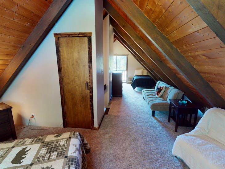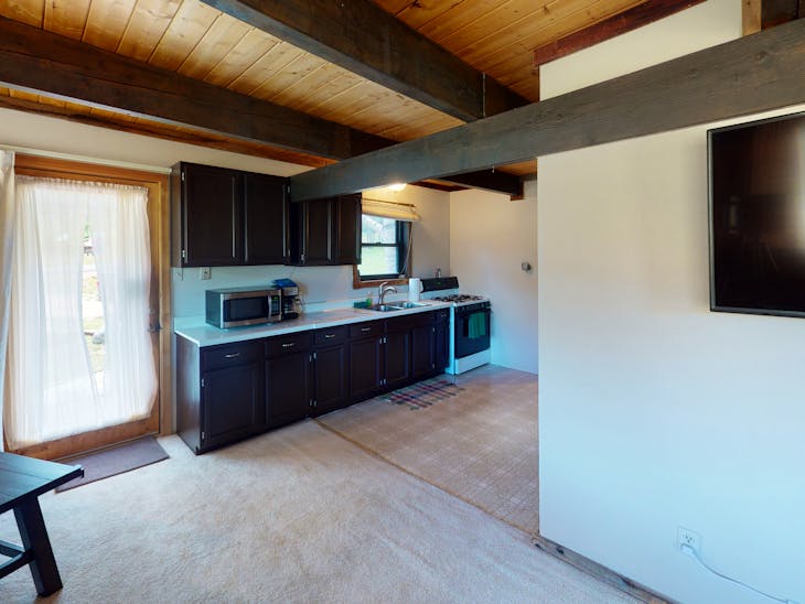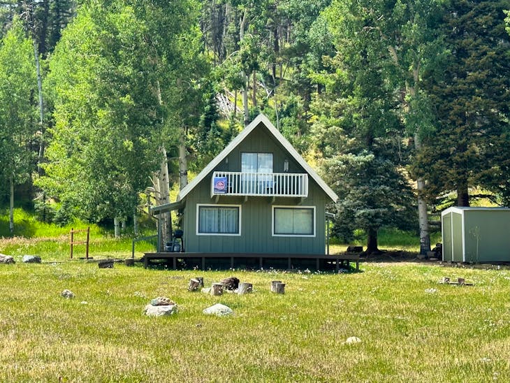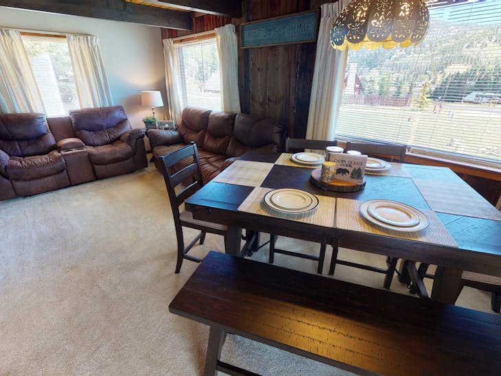 This quaint cottage allows you to enjoy all that the peacefulness of Red River has to offer. Step outside to the front porch or the top balcony and just lose yourself in the beautiful views of the mountains. As you enter the property, the living room is off to your right which boasts an amazing amount of natural light and comfortable seating. Either gaze out the windows or enjoy what’s on the large flat screen Tv. This is a living room dining room combo, so no matter where you are, you can enjoy a great meal together. The cozy mountain cottage has a full service kitchen; however, it doesn’t have a dishwasher, so you’ll need to clean up the old fashion way. Off the kitchen is the master bedroom and bathroom. The master has a queen sized bed. This home also comes with a laundry room, so pack light as you can do your laundry here. Upstairs is a loft that has 2 twin beds, futon and full size bed. The kids will absolutely love it! The cottage is pet-friendly*, which means Fido the family pup can come and enjoy the mountains too! This property will accept two dogs under 100 lbs. with a $125 nonrefundable pet fee, due at check in. In the evening you can enjoy a few burgers on the grill and smores by the firepit. If you are looking for a place to work remotely, this place has high-speed Wi-Fi, so it’s perfect for our digital nomads! Another great thing about this cute cottage is that you can bring your RoVs!! Plenty of space to park the trailers! We look forward to seeing you soon. All reservations are subject to our rental terms and conditions and cancellation/refund policy. In the event of a cancelation, merchant service charges are non-refundable. If you have any questions, please reach out prior to your stay.